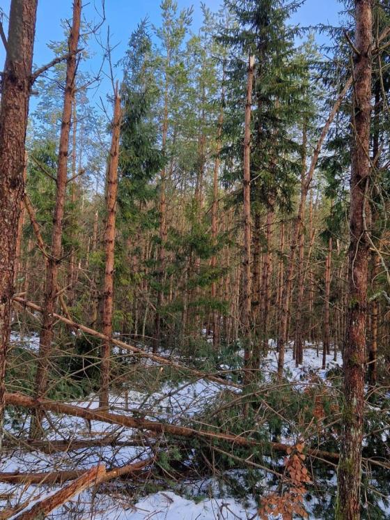 Nadleśnictwo przystąpiło do udrażniania, uprzątania dróg żeby rozpocząć porządkowanie lasu. Prace z tym związane mogą niestety potrwać kilka miesięcy.