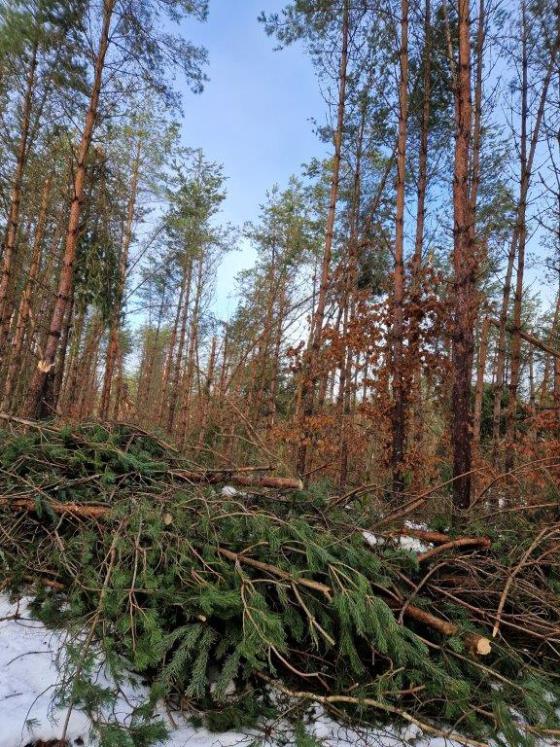 Nadleśnictwo przystąpiło do udrażniania, uprzątania dróg żeby rozpocząć porządkowanie lasu. Prace z tym związane mogą niestety potrwać kilka miesięcy.
