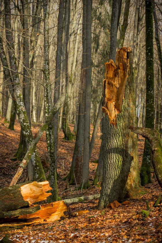 W styczniu w naszym regionie mokry śnieg łamał drzewa niczym zapałki. Jednym z nich był dąb, na którym gniazdował bocian czarny. W wyniku obciążenia drzewo runęło, niszcząc gniazdo.