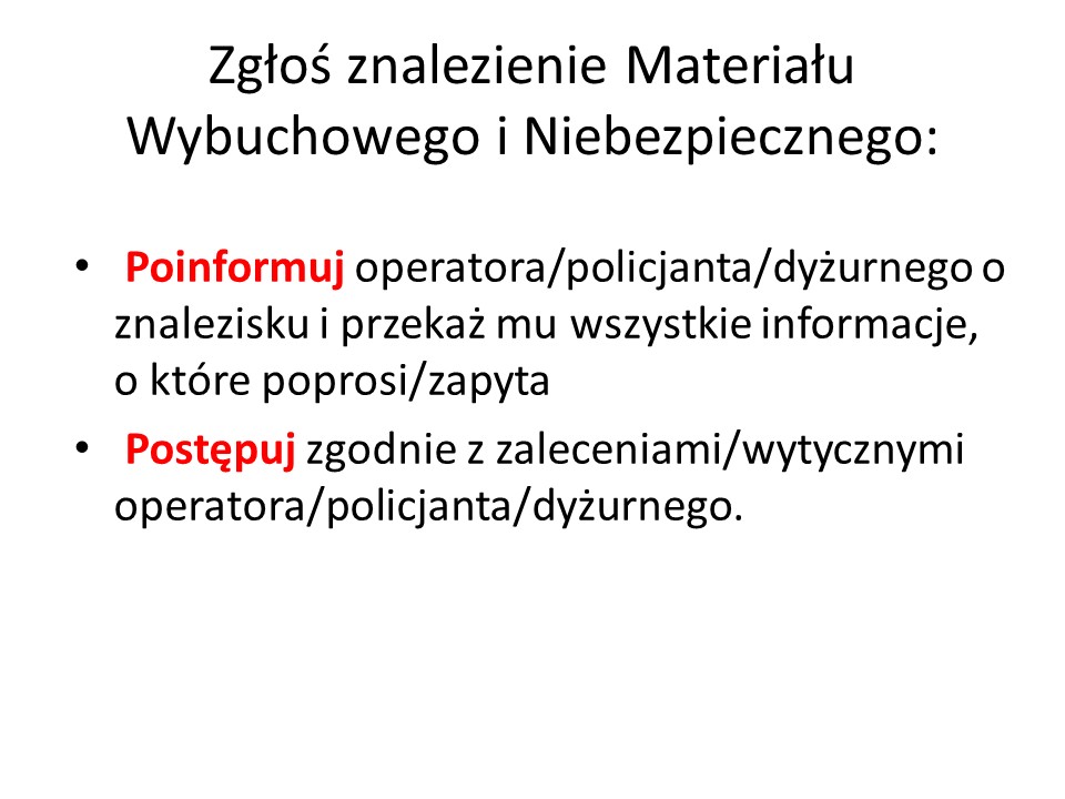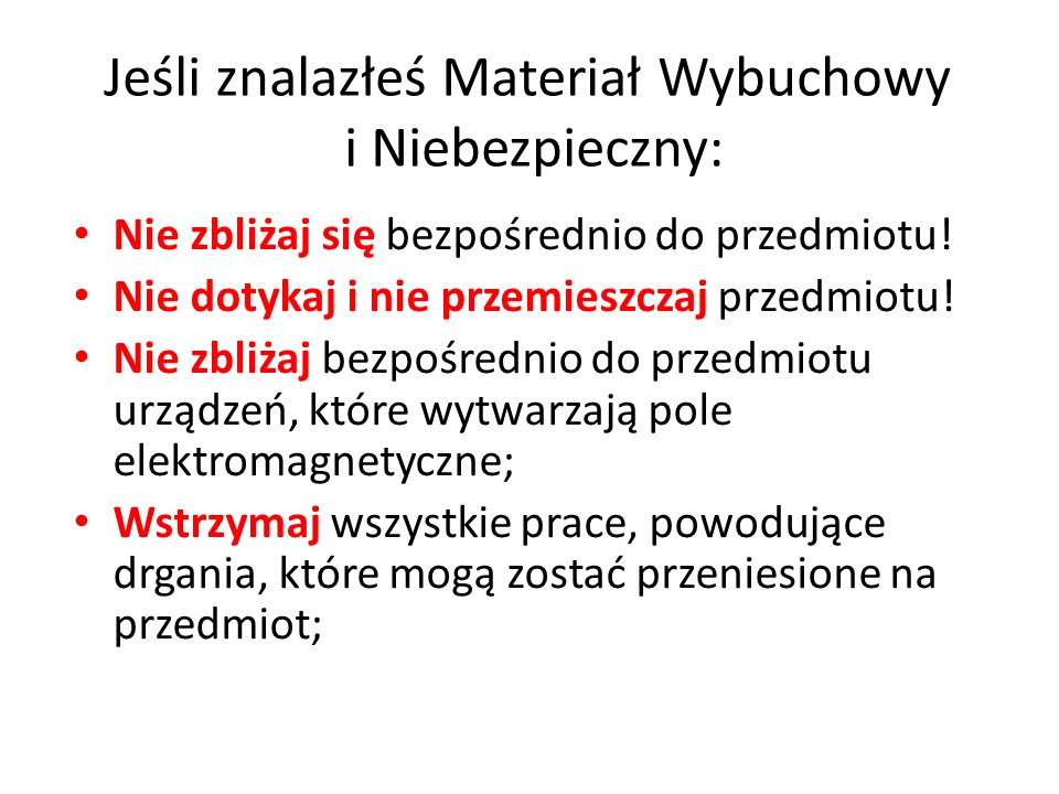 Materiał informacyjny w zakresie postępowania w razie znalezienia niewybuchów na terenach leśnych PGL LP przygotowany przez Centrum Szkolenia Wojsk Inżynieryjnych i Chemicznych.