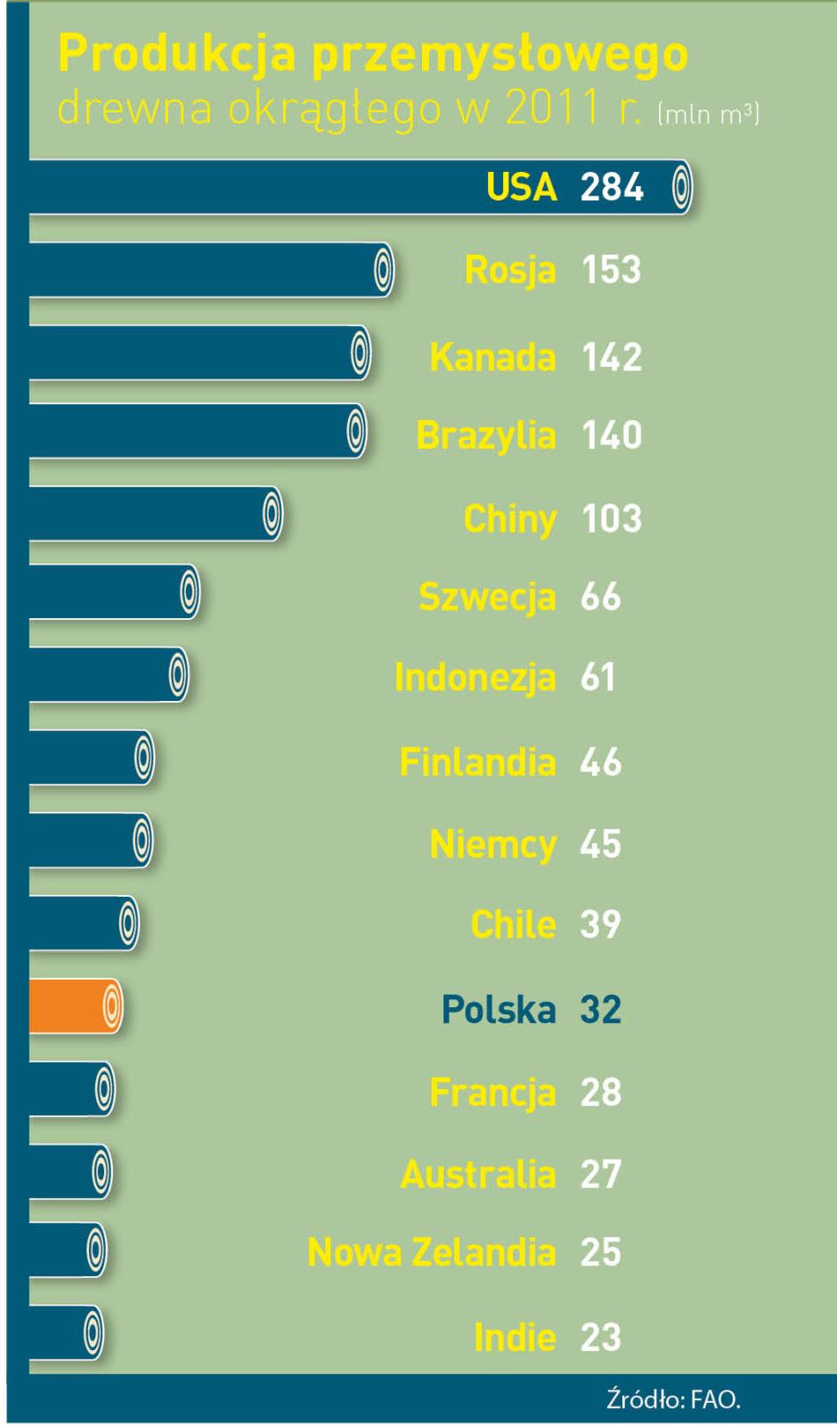 - 30 mld zł w postaci bezpośrednich inwestycji zagranicznych przyciągnął od 1990 r. polski sektor drzewny (5,5 proc. wszystkich).